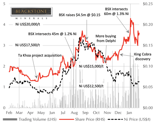 Nothing beats a discovery in terms of share price performance. The King Cobra nickel sulphide mineralisation intersected at Ta Khoa is excellent news for the future of the project.