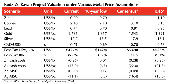 World Class Asset: Within polymetallic deposits, volcanic massive sulphides or VMS typically present the best grades, but can be limited in size. The proposed Kudz Ze Kayah project in Yukon has both the size (15.7 Mt ore reserve) and a valuable combination of base and precious metal grades (Zn, Cu, Pb, Ag, Au) to stand out among its peers.