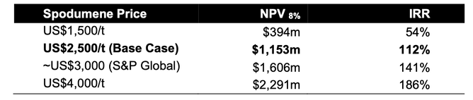 Capital Expenditure: to allow for the flotation circuit and costs inflation, we assumed a development capital expenditure of $265 million, including $250 million pre-production. Note $85 million was estimated for the Finniss project. Operation Costs: those were derived from the Mt Cattlin restart study (1.6 Mt throughput) dated March 2021 after applying a 15% cost increase.