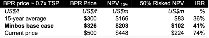 MNB Valuation: assuming an additional equity capital raising of A$30 million (200 million shares @ $0.15) in FY2024 to complement the debt, we derived a valuation of $258 million of $0.25 per share. Beyond the Cabinda rock phosphate project, which currently makes the key part of our valuation, Minbos project portfolio offers multiple ways to see its overall valuation increase quite significantly over the medium to long-term.
