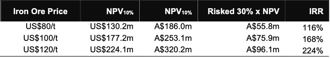 Orokolo Bay Project Valuation: using different iron ore price assumptions: