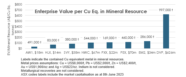 Comparison with ASX-Listed Companies/Projects: In the absence of a MRE for Storm the follow chart is essentially based on West Desert, where copper represents about 10% of the MRE.